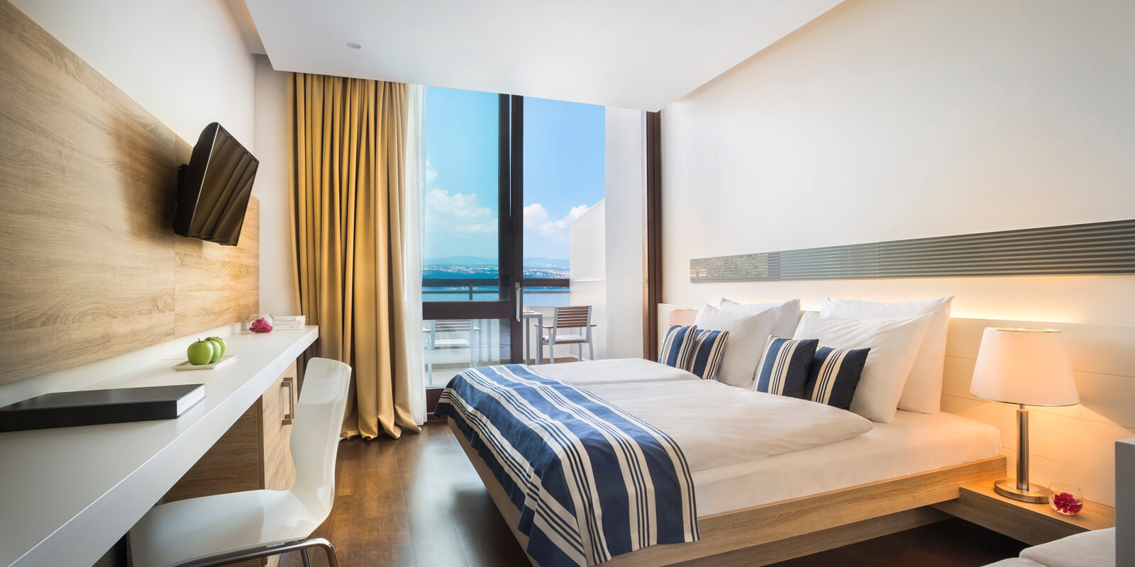 Das Hotel Admiral (4*) Opatija ist nur einen kurzen Fußweg vom Stadtzentrum entfernt und befindet sich direkt an der Adria und an der Küstenpromenade Lungomare. Das Hotel Admiral bietet einen Blick von oben auf die Marina in Opatija und ist ein Vier-Sterne-Hotel, das für Segelbegeisterte eine ideale Unterkunft darstellt. Die Architektur des Hotels Admiral wirkt von außen schlank und modern, während es von innen einen hellen und geräumigen Eindruck macht.