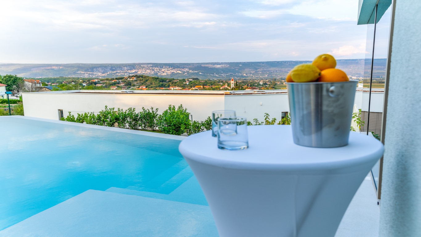 In dem malerischen Ort Imotski Krajina, direkt hinter dem Biokovo-Massiv, liegt unsere moderne Villa Red, die erst 2021 fertiggestellt wurde. Die Ausstattung der Villa verbindet puristisches Design und luxuriöses Comfort. Traumhaft schöne Aussicht und ein Infinitipool der ins malerischer Tal zu fließen scheint, sind noch ein Grund hier eine unvergessliche Zeit mit Familie oder Freunden zu verbringen.