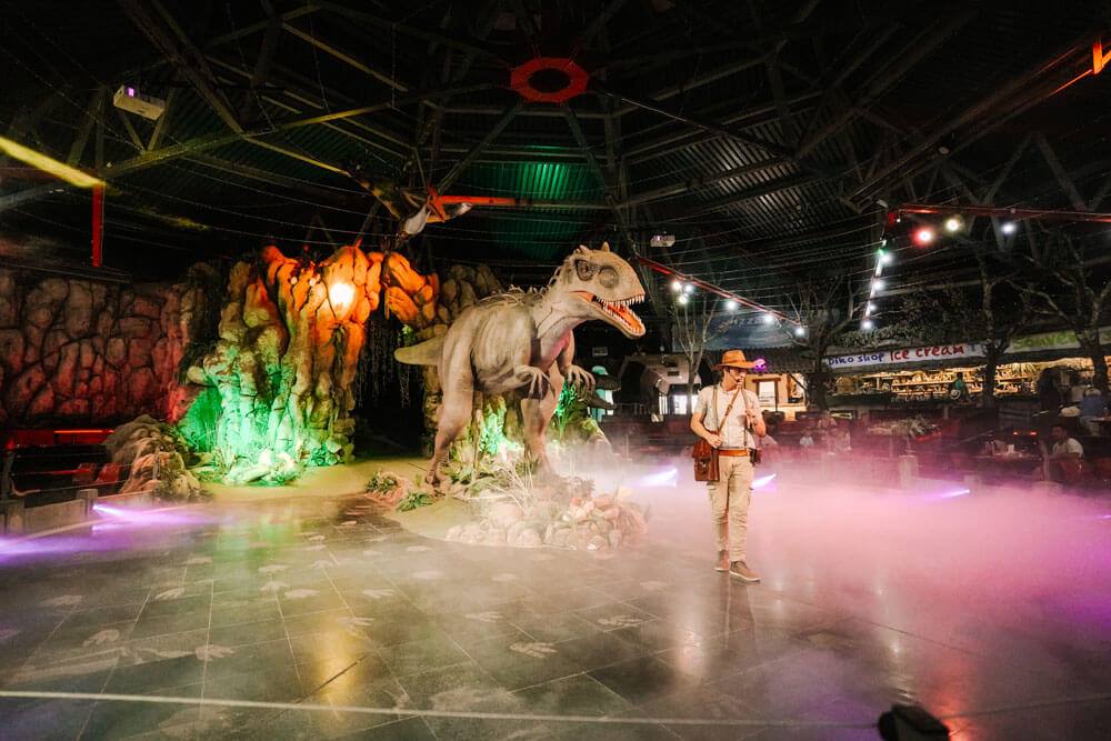 Theme park with life size dinosaurs, rides, snack bars and live entertainment shows.