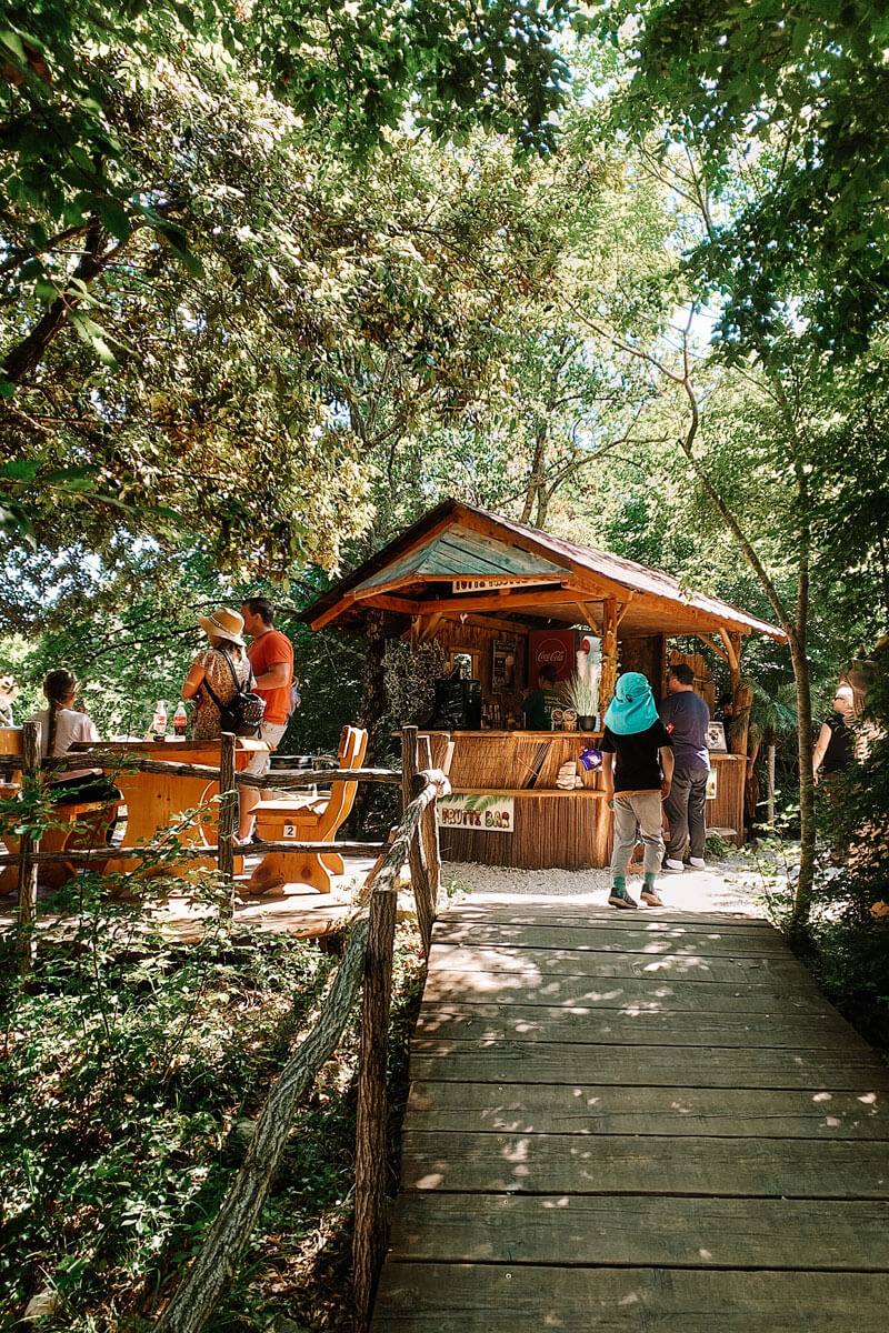 Gastronomy: Parents can relax in the "JUNGLE BAR" or the "TUTTI FRUTTI" in the shady forest, while the children enjoy the attractions without their parents losing sight of them. Inside the "DINO DOME" are the "MC DINOS" fast food restaurant, the "PIZZA CUT" bistro, the souvenir shop and an indoor playground. On the sunny outdoor terrace, we offer grill specialties in the "JURASSIC BBQ" and various delicacies in the "BAMBOO CAFE".